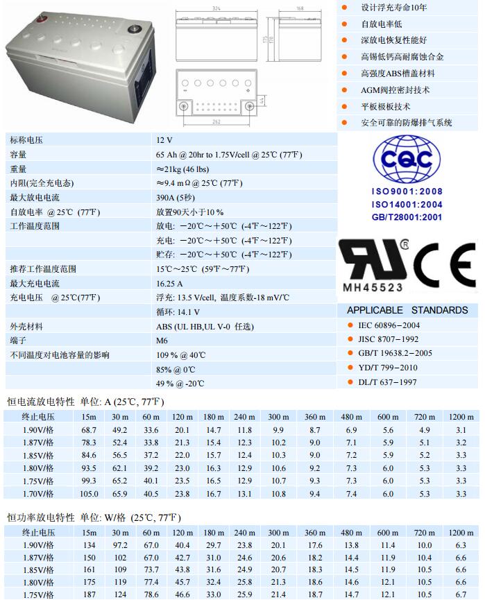 您的位置:首 頁 > 產(chǎn)品展示 > 燈塔U系列鉛酸蓄電池 > 燈塔蓄電池6-GFM-65U(12V65AH)